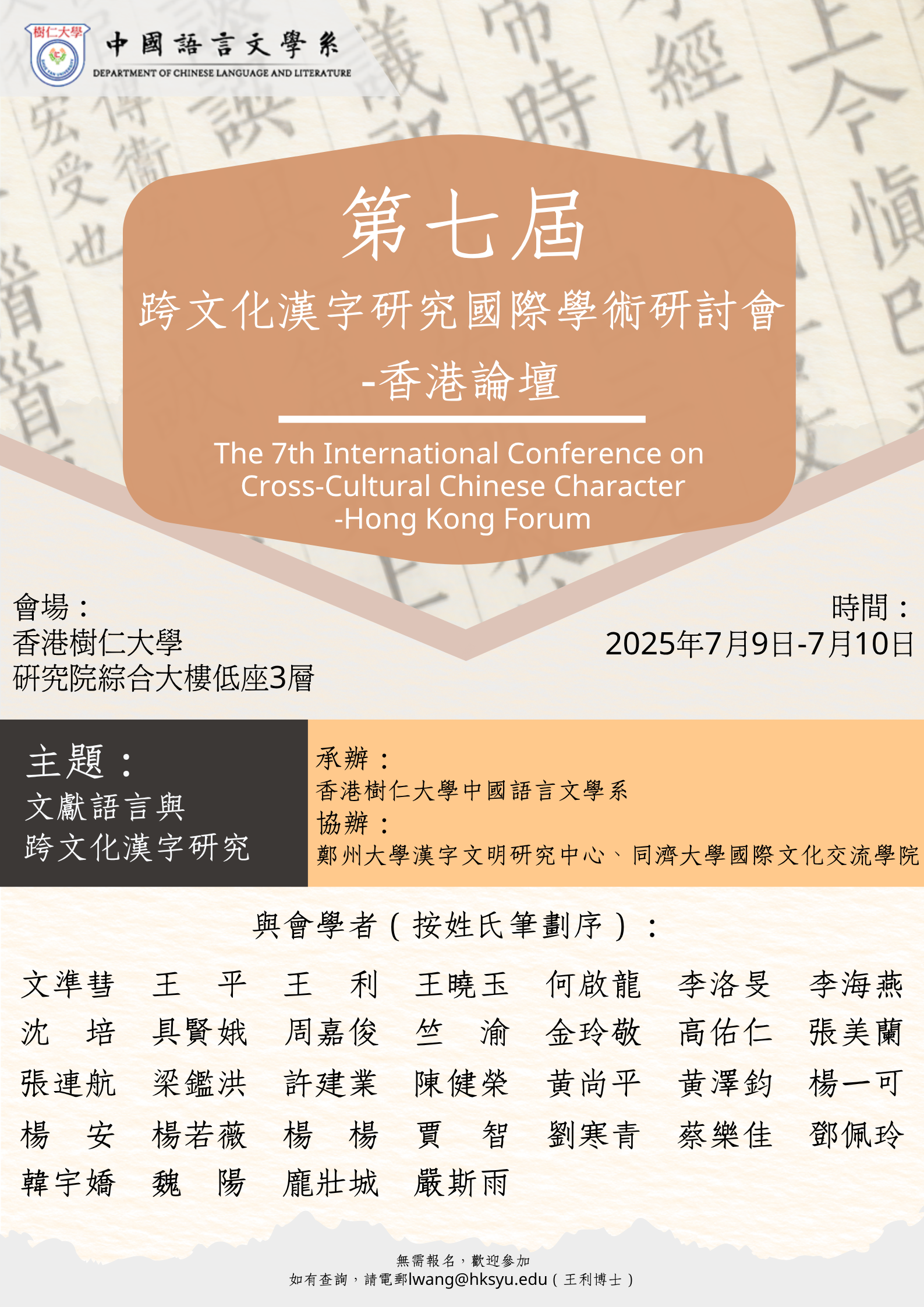 The 7th International Conference on Cross-Cultural Chinese Character - Hong Kong Forum