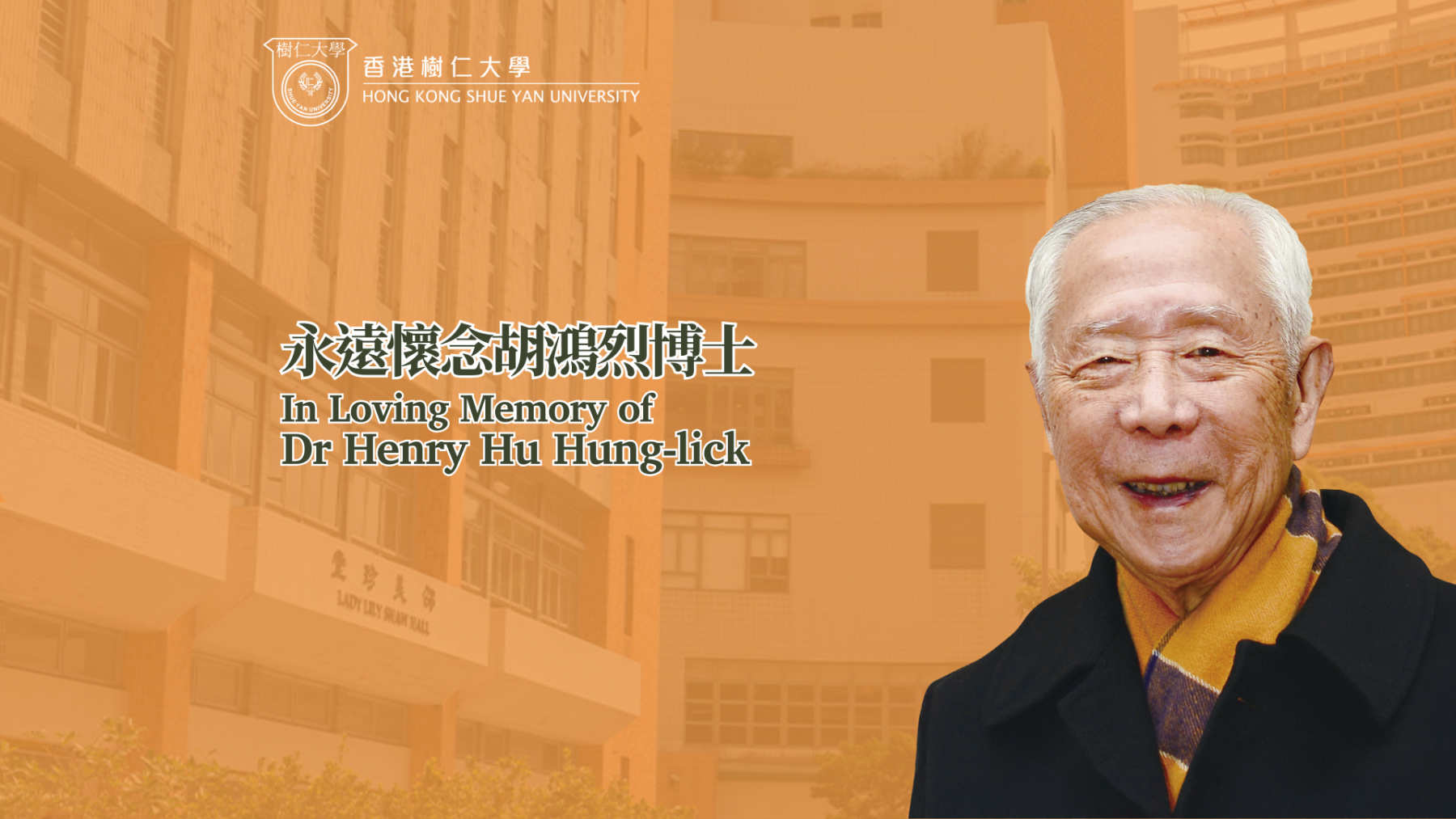 DR HU HUNG-LICK GBM, GBS, OBE, JP (胡鴻烈博士), beloved father of Drs Hu Yao-su and Hu Fai-chung, and founding president of Hong Kong Shue Yan University (HKSYU), passed away peacefully at the age of 105 on July 27, 2025, in St. Paul's Hospital with his family by his side.