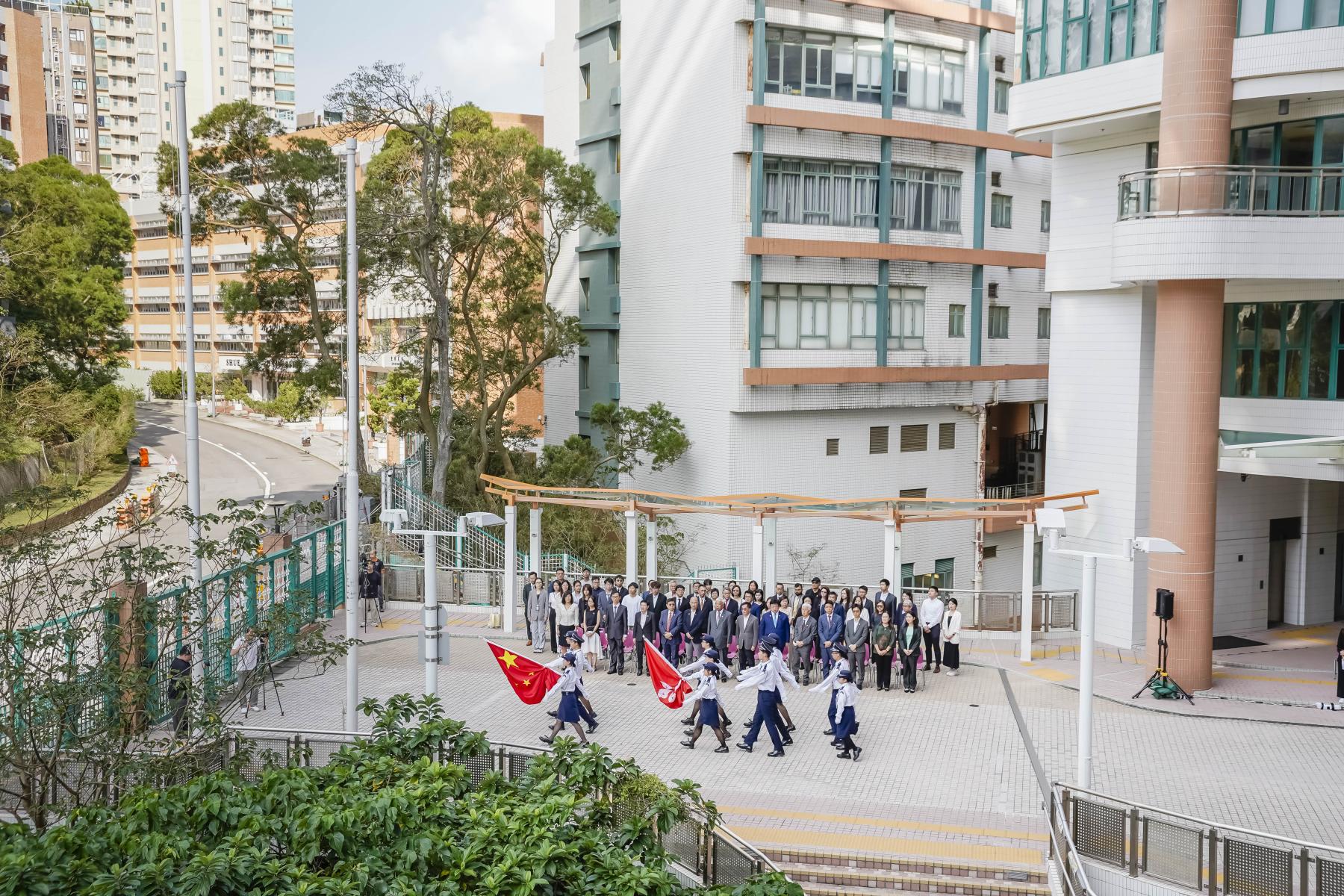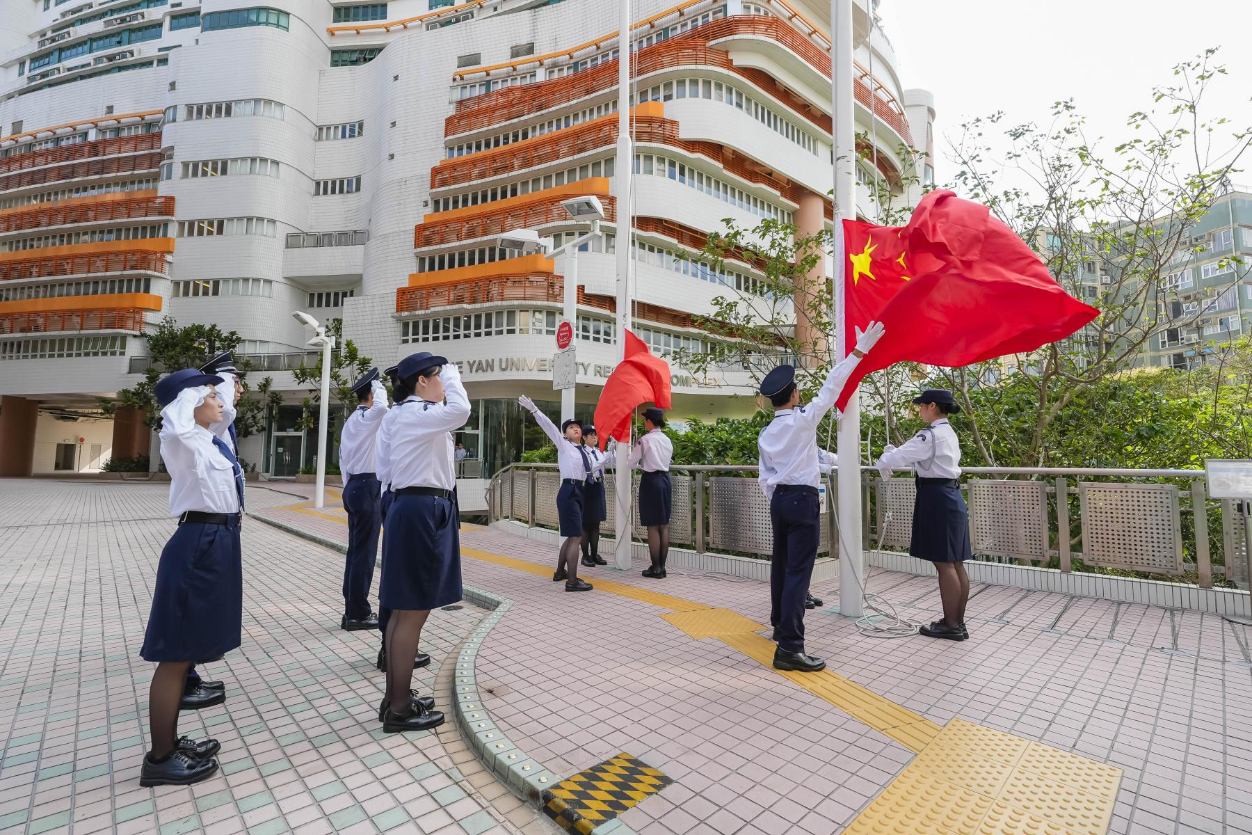 On October 1, HKSYU held a flag-raising ceremony on campus to celebrate the 76th anniversary of the founding of the People’s Republic of China. The ceremony was presided over by Dr Francis Cheung, Vice Chairman of Board of Governors; Professor Danny Wong, Chairman of HKSYU Council; Mr George Lung, Board of Governors member; Dr David Pun, Board of Governors member; Dr Michael Wu, member of HKSYU Council; Dr Hu Fai-chung, Acting President; Professor Catherine Sun, Senior Vice President; and other members of HKSYU senior management. Heads of academic and administrative departments, faculty members and students were also present.